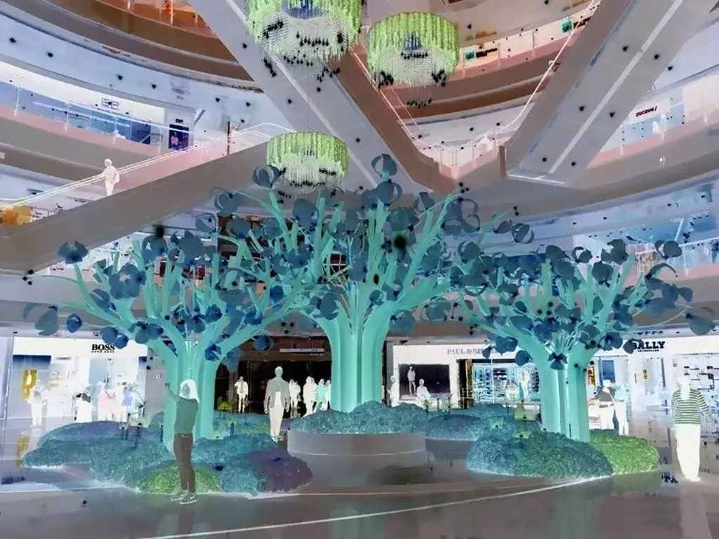 商場結合自身品牌的特色和文化,以周圍環境為主體,通過雕塑的裝飾融入企業文化和商業營銷;以顧客為中心,創造出良好的購物體驗。